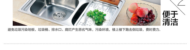 ACLQ75-廚房垃圾處理器,該機采用先進的研磨系統,采用特殊合金錘粉技術,能根據垃圾的強度,自動調節工作位置,處理垃圾的范圍和細度優良,品質性能穩定性強,產品暢銷多個國家和地區,得到客戶的廣泛認可。