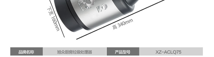 名稱ACLQ75-廚房垃圾處理器 電源220V 功率0.75kw 產量 尺寸 重量8.5kg 規格 其他轉速1480R/min,研磨倉容量1310ML