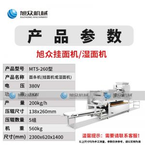 MT5-260型面條機,不同的面刀可以做出不同形狀的面食做工細(xì),實用又方便,出面均勻,成型漂亮,可咨洵客服了解詳情