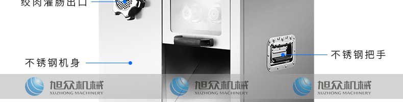 XZ-7絞切機(jī),多功能一體機(jī),切肉絞肉/灌腸/切菜。加厚不銹鋼優(yōu)質(zhì)機(jī)身堅固耐用,不易生銹,安全衛(wèi)生易清洗。