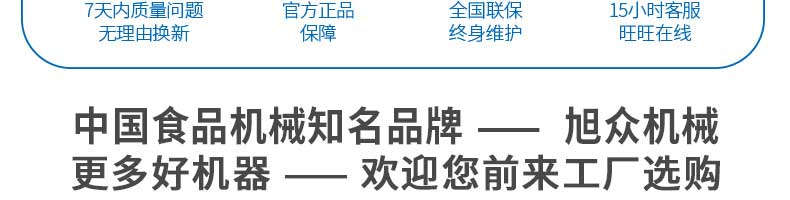 廣州旭眾食品機(jī)械有限公司是一家集科研開發(fā),生產(chǎn)設(shè)計,營銷服務(wù)為一體的現(xiàn)代化生產(chǎn)企業(yè)。現(xiàn)代化生產(chǎn)車間,精湛制造技術(shù),所產(chǎn)機(jī)械歷經(jīng)市場重重考驗,不斷贏得海內(nèi)外客戶的贊譽。