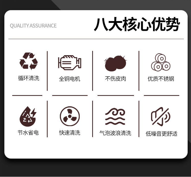 全自動果蔬氣泡清洗機,堅固耐用,整機采用質不誘鋼。由防銹外層、鋼層底、強硬鋼外層組成,耐用不易生銹。澎湃大動力源于好,搭載變頻電機,強勁動力穩定輸出噪音低,好的動力源于好“芯”