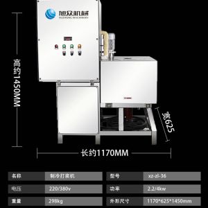 XZ-ZL-36制冷打漿機,滿足大容量設計,大容量桶不銹鋼刀俎、一次性可打漿530KG,加厚不銹鋼材。